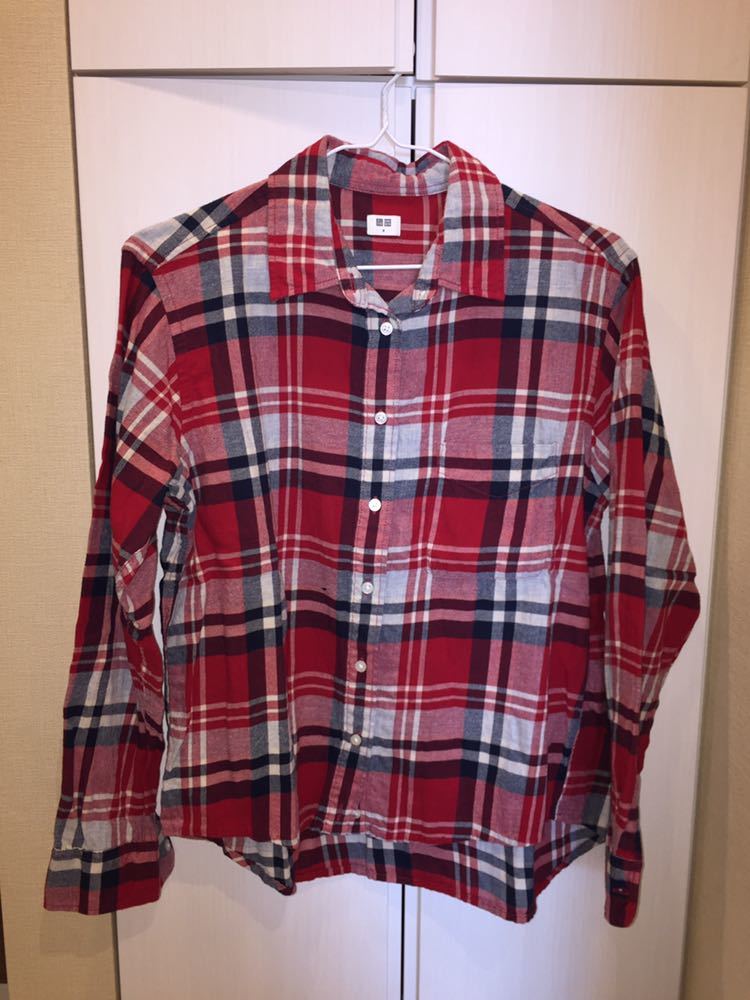 - 訳あり ユニクロ フランネルチェックシャツ 長袖 サイズM レッド系