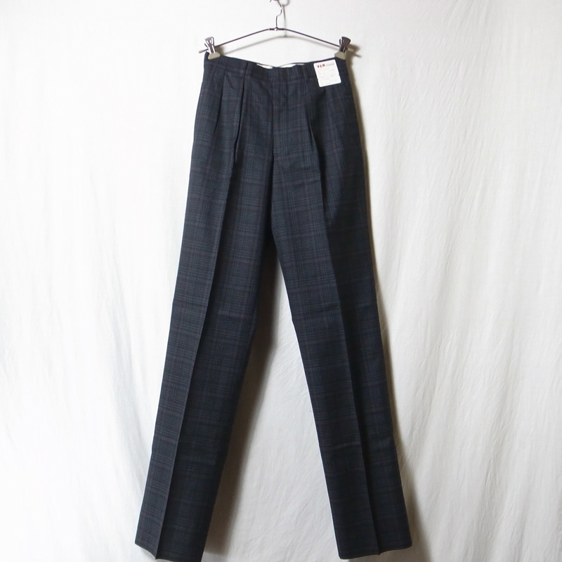 - 新品 ■ VAN JAC ヴァンヂャケット 2タック ウール チェック パンツ S / 未使用 当時物 日本製