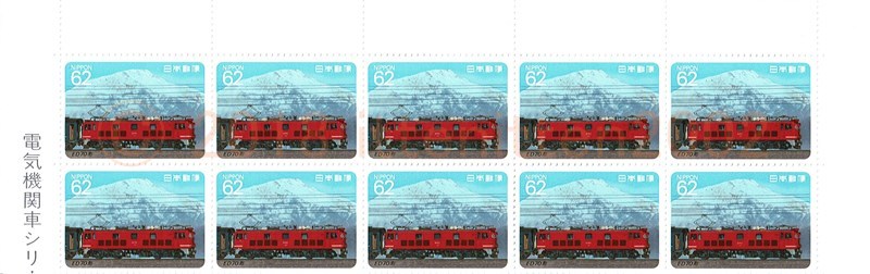 > 【未使用】 切手 ブロック 電気機関車シリーズ 第3集 ED70形 62円x10枚 額面620円分 送料62円~