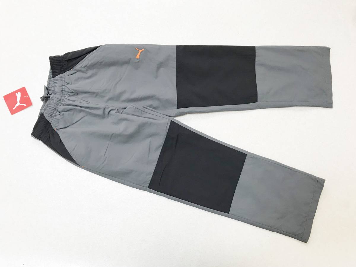 - 130サイズ:プーマ【PUMA】トリコット起毛裏地/キッズ ウーブンパンツ*ナイロンロングパンツ:グレーxブラック