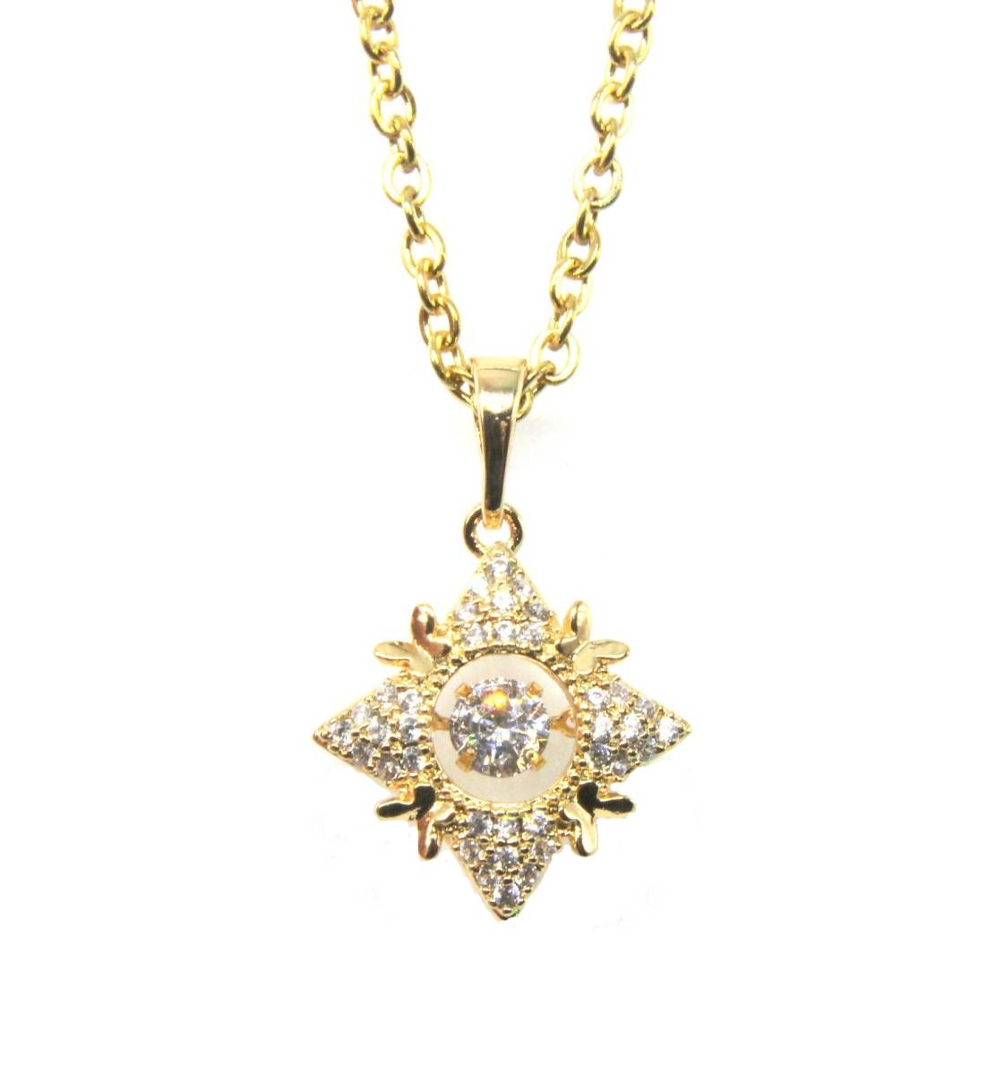 - 超 激安 限定 新作 人気 レア かわいい おしゃれ ダンシングストーン ネックレス ペンダント 揺れる 雪 結晶 czダイヤ ゴールド レディース