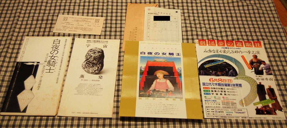 - 【送料無料】『白夜の女騎士』『宇宙蒸発』【夢の遊眠社】チラシ パンフ チケット 封筒などまとめて 1985 野田秀樹 上杉祥三 段田安則