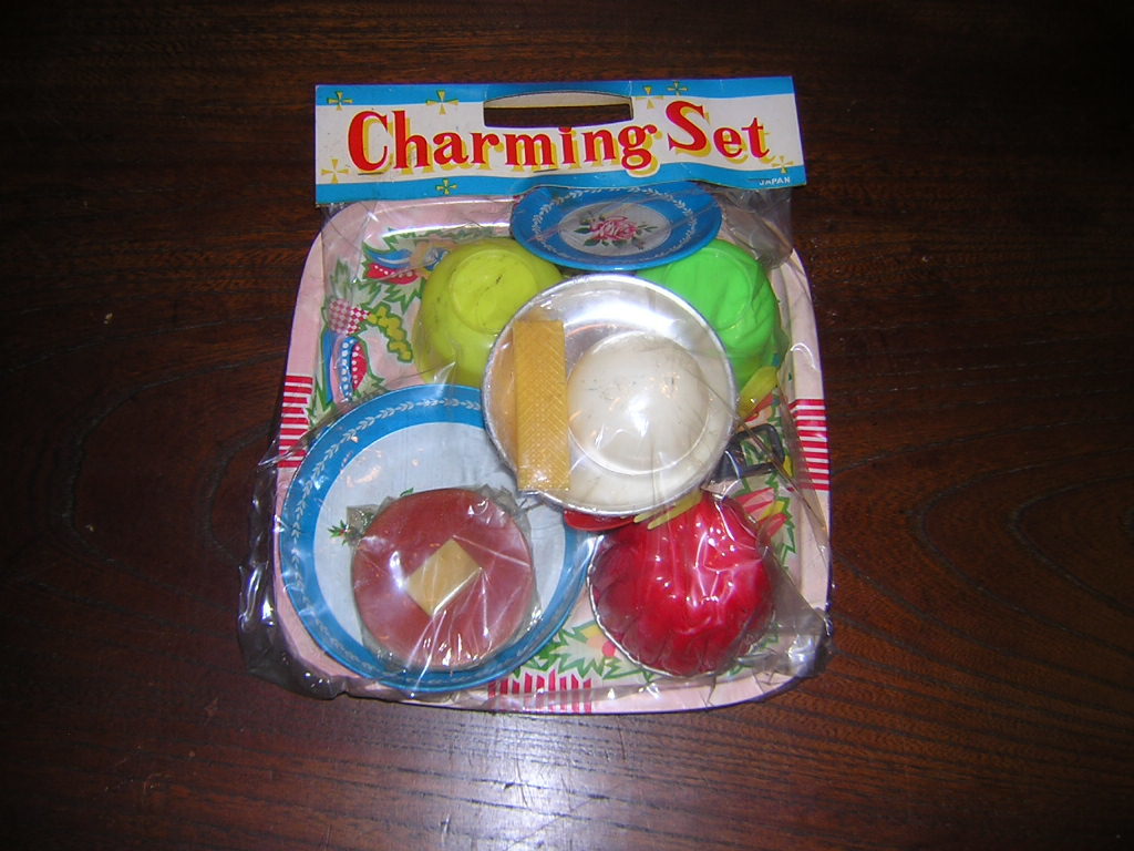 - 昭和レトロ 可愛いブリキのままごとセット チャーミングセット 60~70年代 ホットケーキ アイス 薔薇 トレー 未開封品!喫茶店