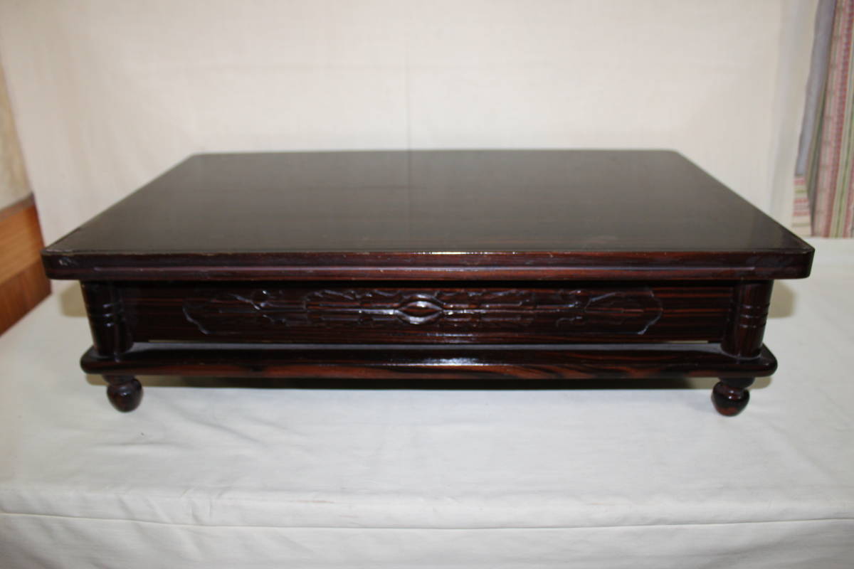 - ◆古い唐木花台 平卓 唐草彫刻 飾台 盆栽 香炉台◆
