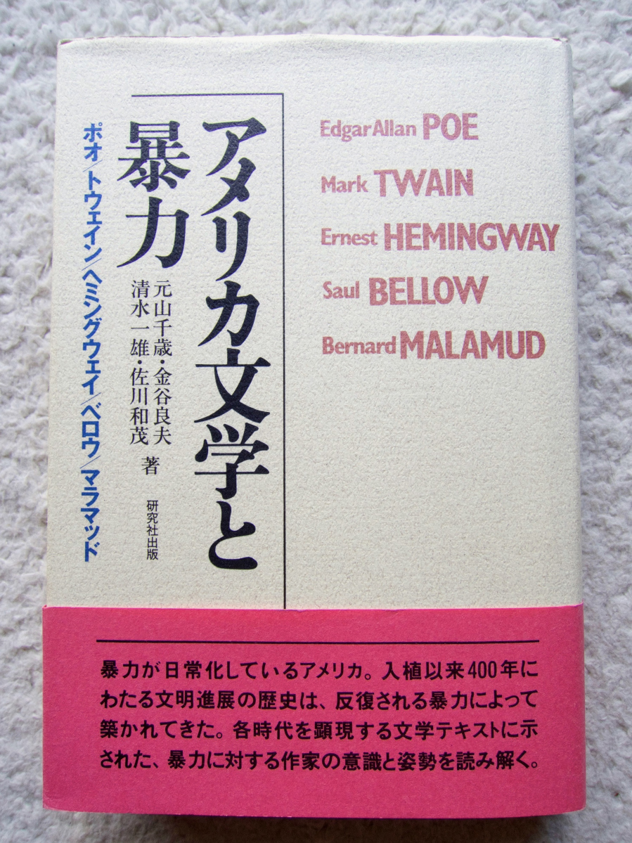 - アメリカ文学と暴力 ポオ/トウェイン/ヘミングウェイ/ベロウ/マラマッド (研究社出版) 元山千歳 ・清水一雄・金谷良夫・佐川和茂 著