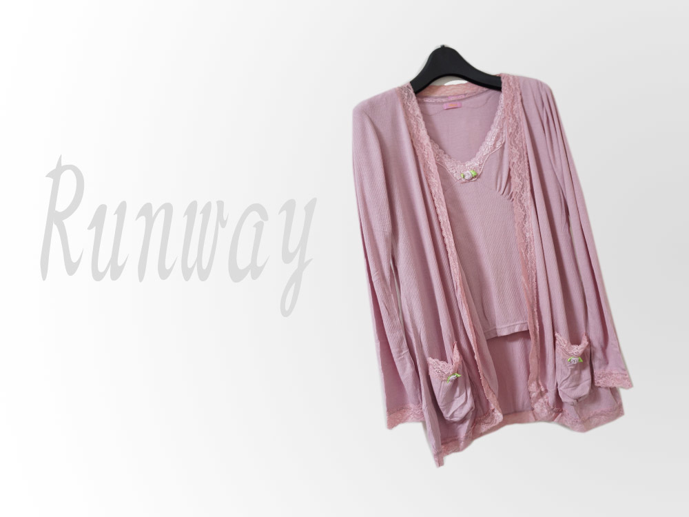 - ●新品/アンサンブル/カットソー/ピンク系/レーストリミング/バラ/L/レディース/2点セット●f5521