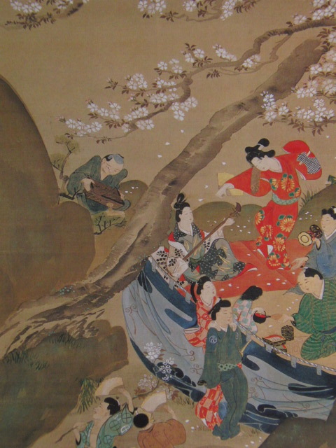 - 鍬形蕙斎、【桜花遊宴図】、希少な額装用画集より、状態良好、新品額装付、インテリア、春、桜