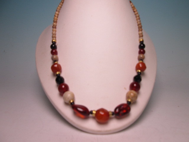 - ☆天然琥珀玉マルチカラーのデザインネックレス 34g 未使用品