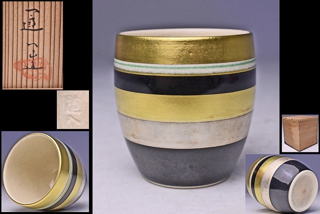 - 高橋道八 ★ 仁清風金銀彩ぐい呑 ★ 共箱 ★ 京焼清水焼 ★ 美しく高級感あるぐい呑