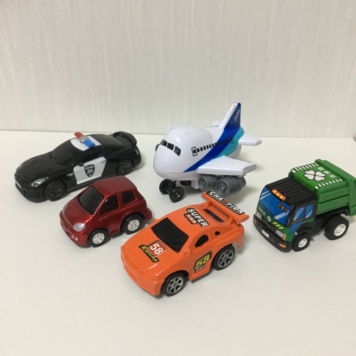 - プルバックミニカー 5個セット 5~8.5センチ 〔USパトカー、ごみ収集車、飛行機、レースカー〕