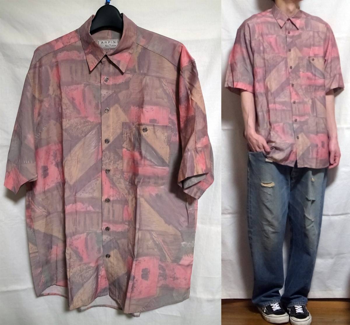 > 古着 総柄 アート柄 オーバーサイズ ビッグシルエット 半袖シャツ ヴィンテージ vintage L サイズ
