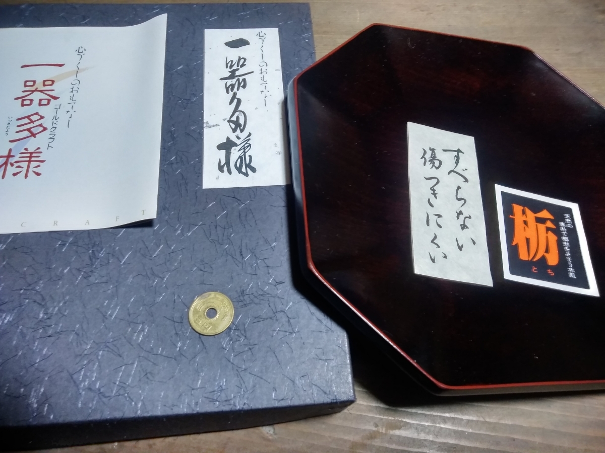- 栃の木 漆器 八角盛器[縦横24㌢高さ2㌢重さ500㌘] 一器多様 贈答品 元箱有 保管品美品 天然木