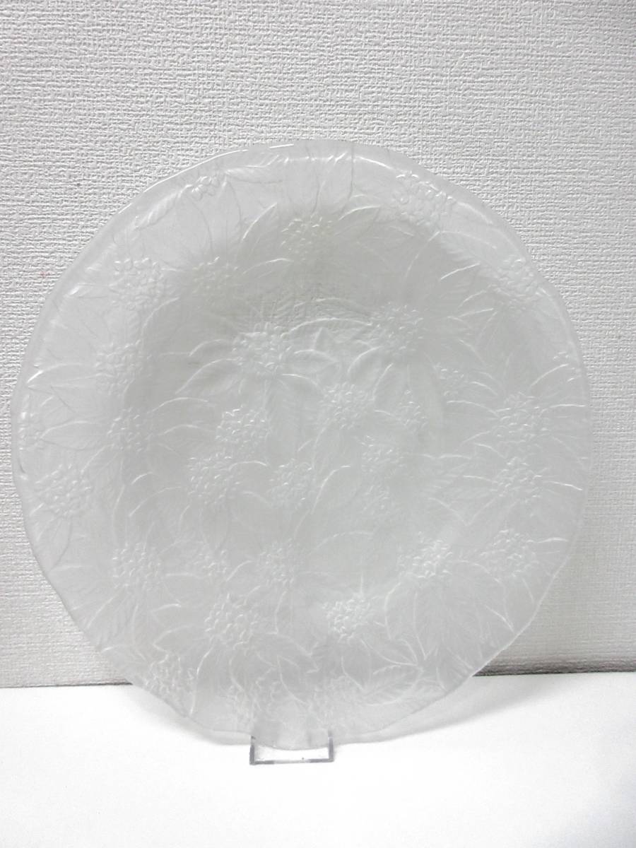 - 美品■すりガラス ガラス皿 大皿 盛皿 花柄 管理1906 L-1