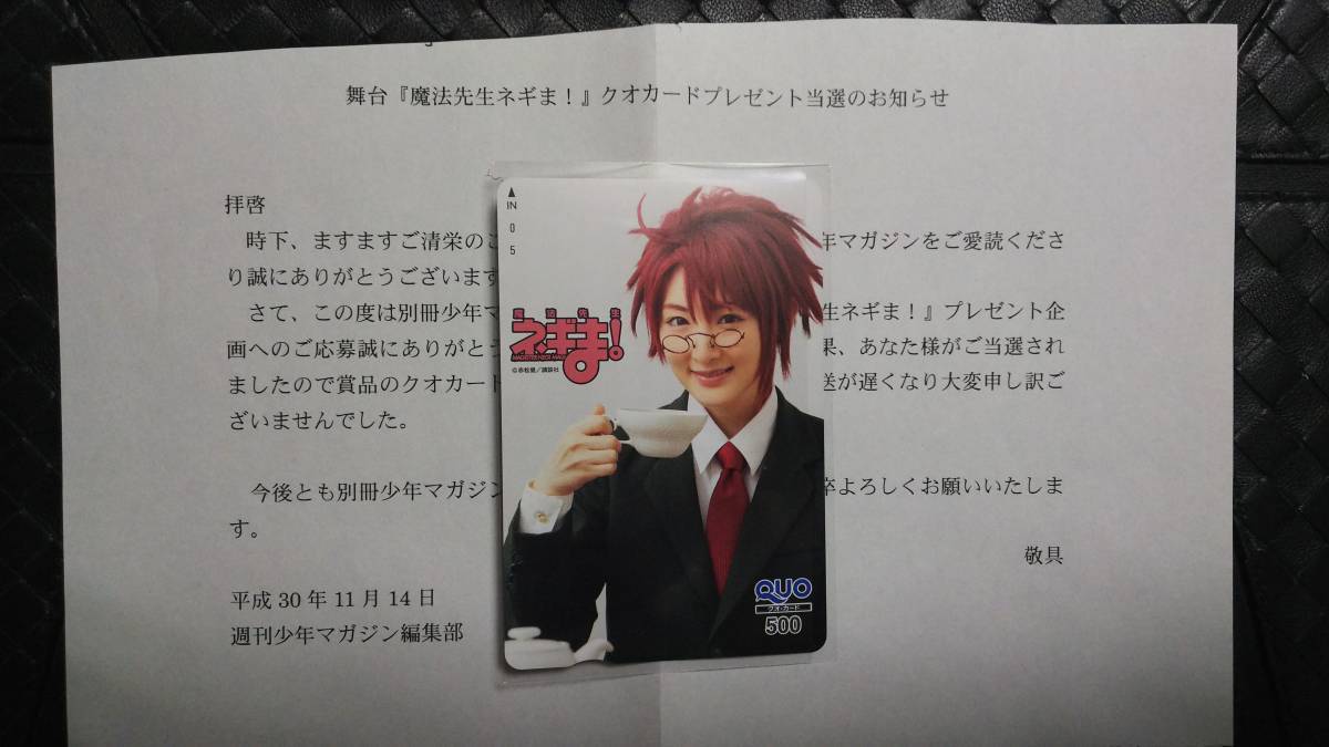 - 2018年 別冊 少年マガジン8月号 魔法先生ネギま! 抽プレ クオカード 生駒里奈 乃木坂46