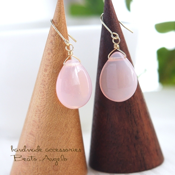 - ◆+angelo+K14GF チェコ 洋梨ドロップのピアス(p-006)ミルキーピンク シンプル 一粒 チタン 樹脂 イヤリング