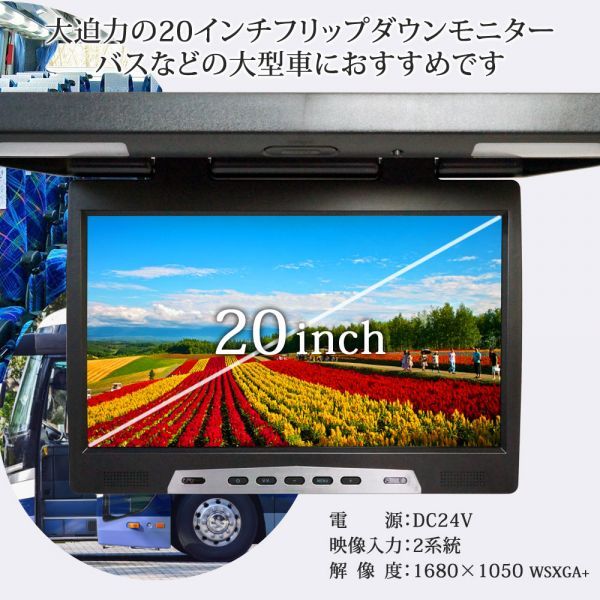 - 24V 大型 WSXGA液晶 20インチ フリップダウンモニター バス キャンピングカー シアタールーム ルームランプ内蔵 赤外線対応 1年保証
