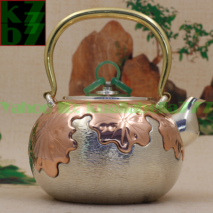 - 【煎茶道具】純銀 口打出し 銀瓶 急須 湯沸かし 薬缶 やかん ハンドメイド シルバー 銀製 伝統 茶文化 金属 工芸品★幅15.5cm 重730g Y64