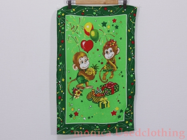 - MB149◆1点もの【キッチンクロス】キュートなおさるカップル*ディッシュクロス*タペストリー*ビンテージファブリック*レトロ雑貨*70×44cm