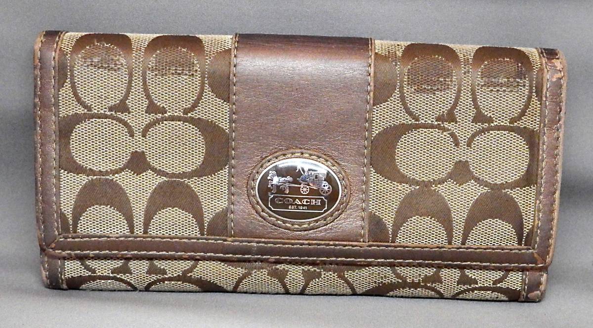 - EU-9821■COACH コーチ 長財布 カード14枚 シグネチャー柄 茶×ゴールドカラー 中古