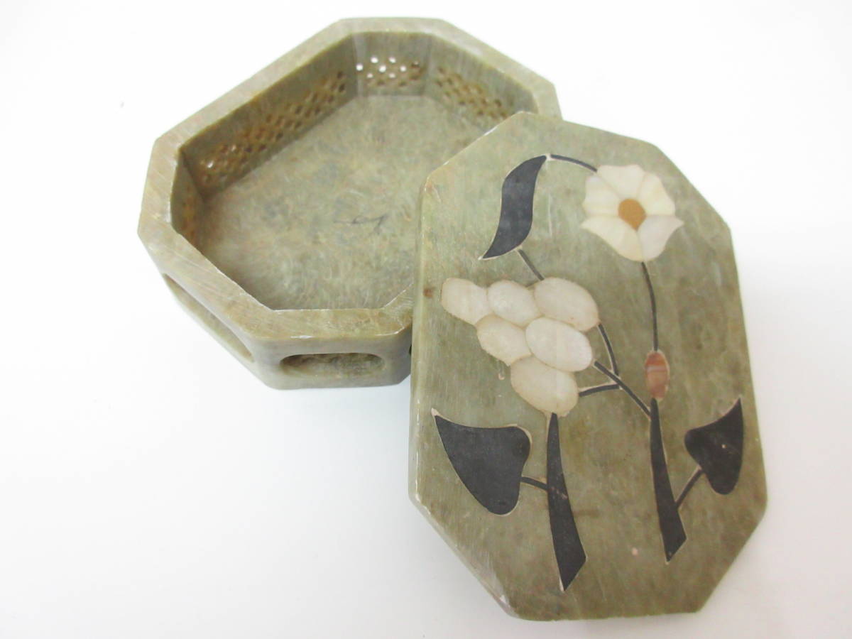 - 並品・激レア!手作り■天然石 セキセイ 小物入れ ジュエリーボックス 花絵 管理1908 O-7