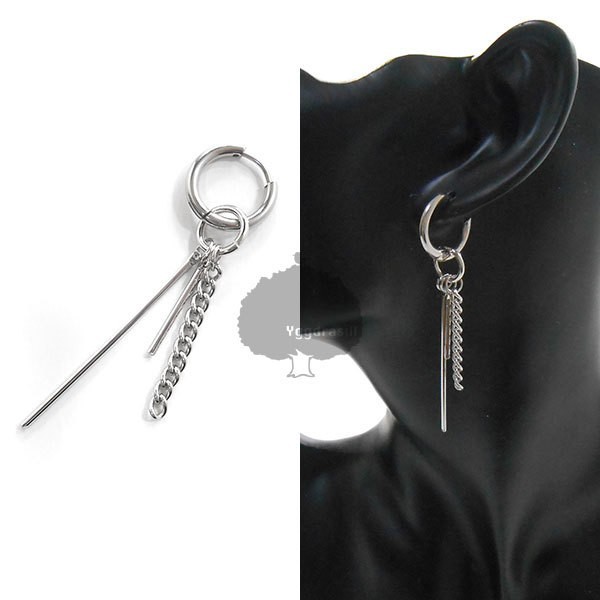 - YGG★新品 2バー×チェーン付き フープピアス シルバー 1個 片耳 シングル BTS ジミン着 メッキ 男女兼用 jimin