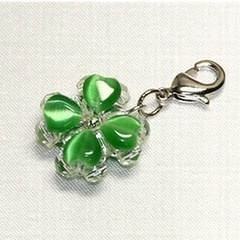 > ♪櫻♪【厳選キャッツアイ】四つ葉クローバーSチャームgr:幸運の四葉。ビーズストラップはファスナーチャーム,キーホルダー等に♪