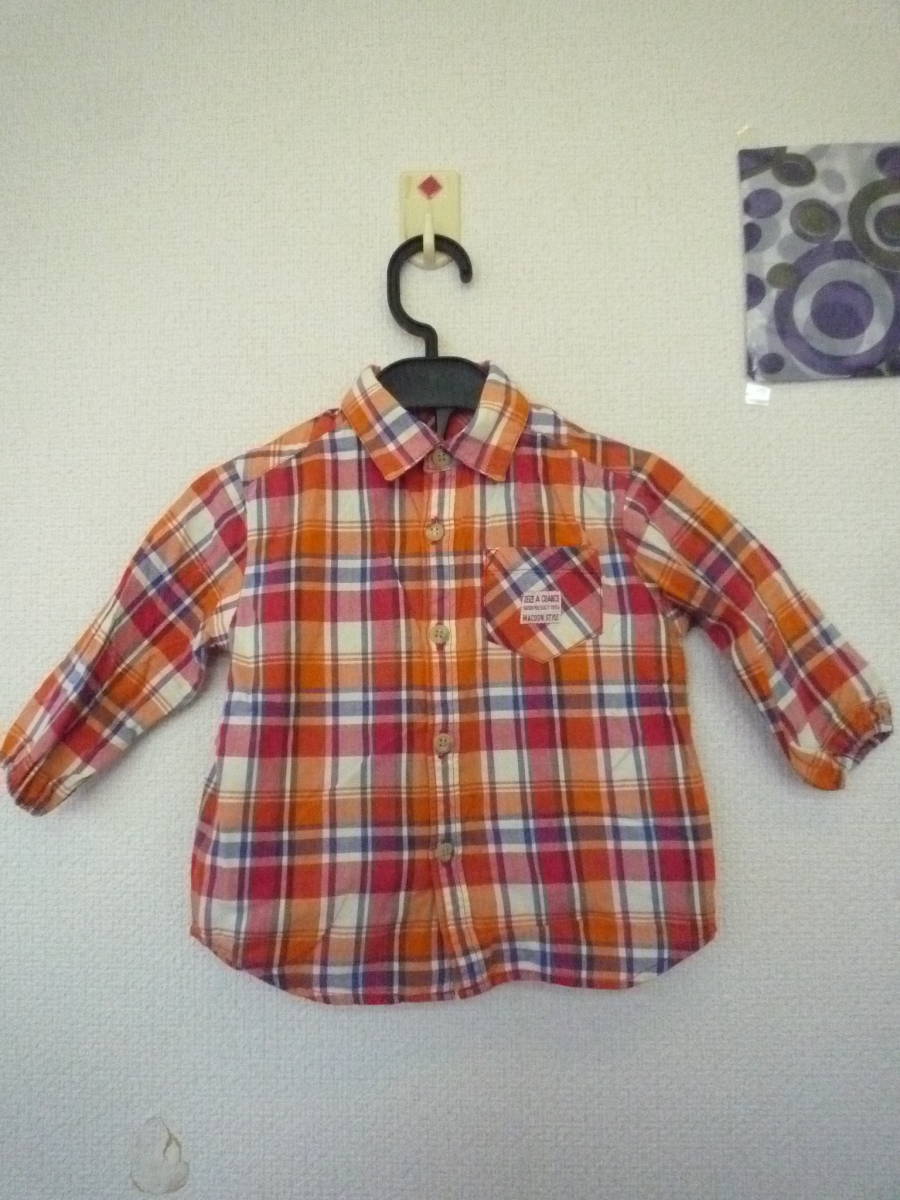 - ★MAC DON チェック柄 長袖シャツ 袖口ゴム オレンジ系(80)