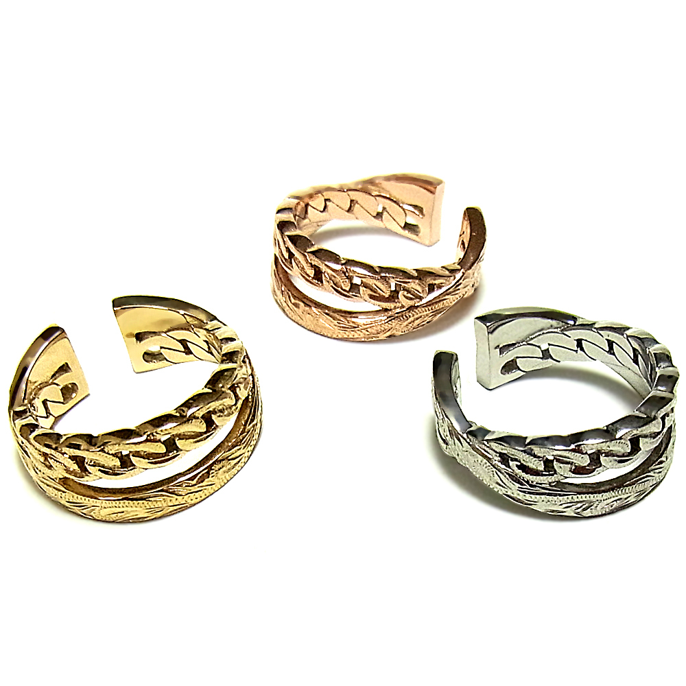 > ★ハワイアンジュエリー★金属アレルギー&温泉&海水浴OK★ステンレスリング★波&連結チェーン&ピンクゴールド&ゴールド&シルバー★