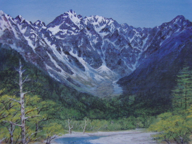 - 横山朱実、「穂高新緑」、希少な画集より、 新品高級額装付、状態良好、送料込み、日本人画家、coco