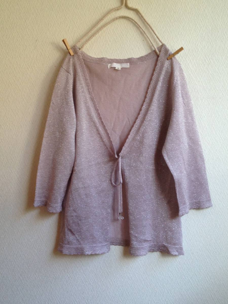 - ★KLEIN D'OEIL クラン デュイュ★シルバーラメ入り★薄手の薄紫ボレロカーディガン★38(M)★