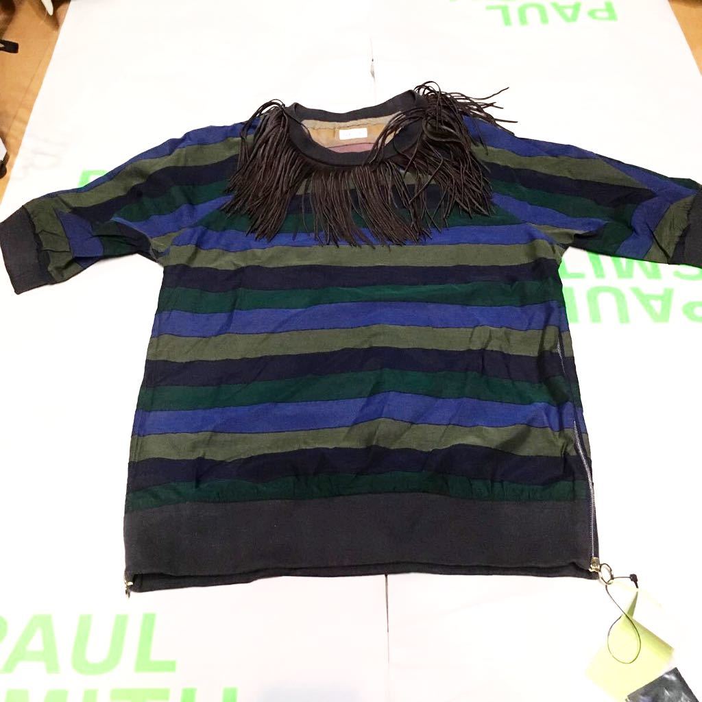 > ●新品●希少 価-34000円 ポールスミス 半袖シャツ 合皮フリンジ Sサイズ 紺×青×茶 コレクションライン PaulSmith