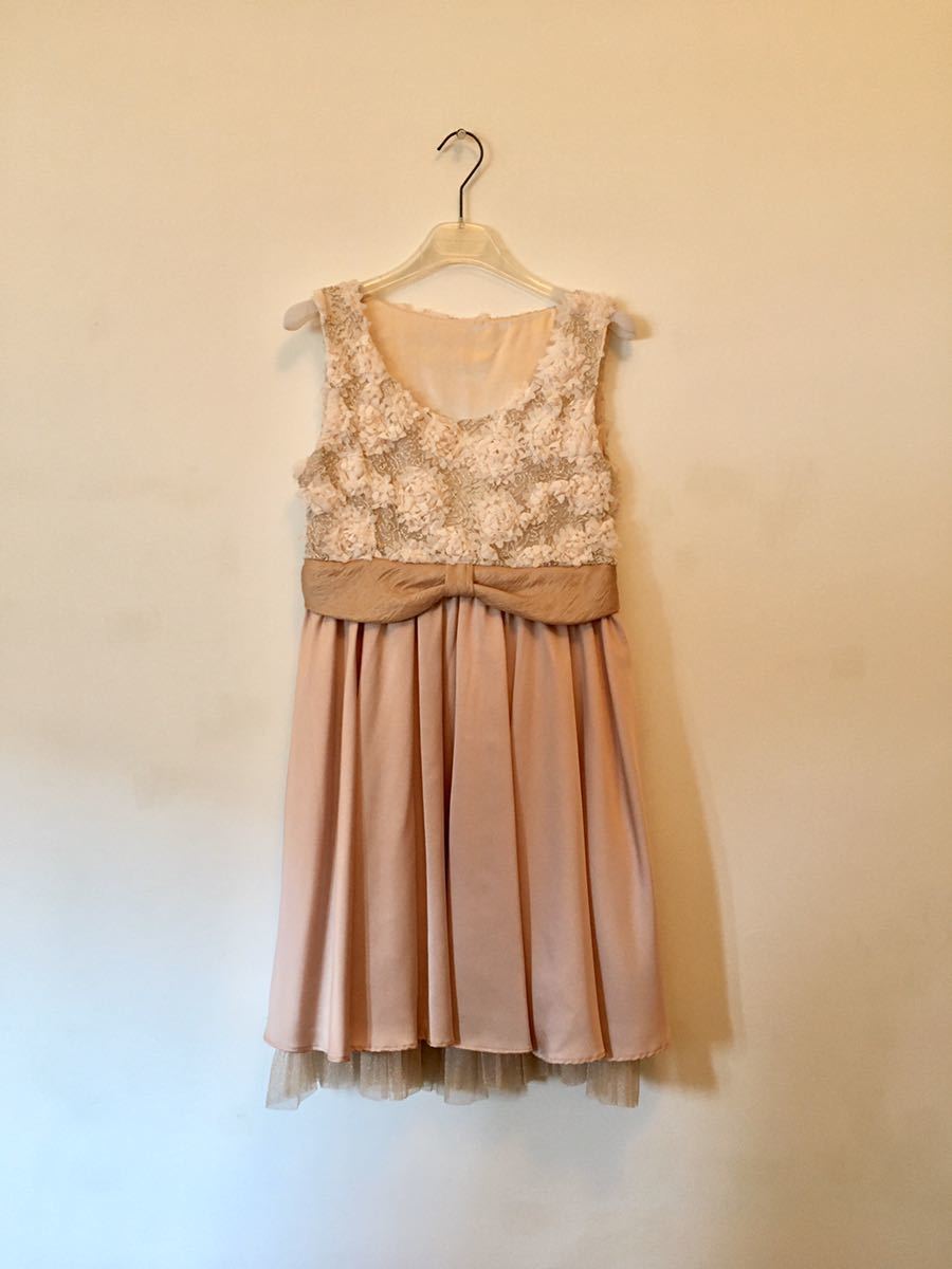 - パーティードレス ゲストドレス 結婚式 披露宴 ワンピース ピンクベージュ