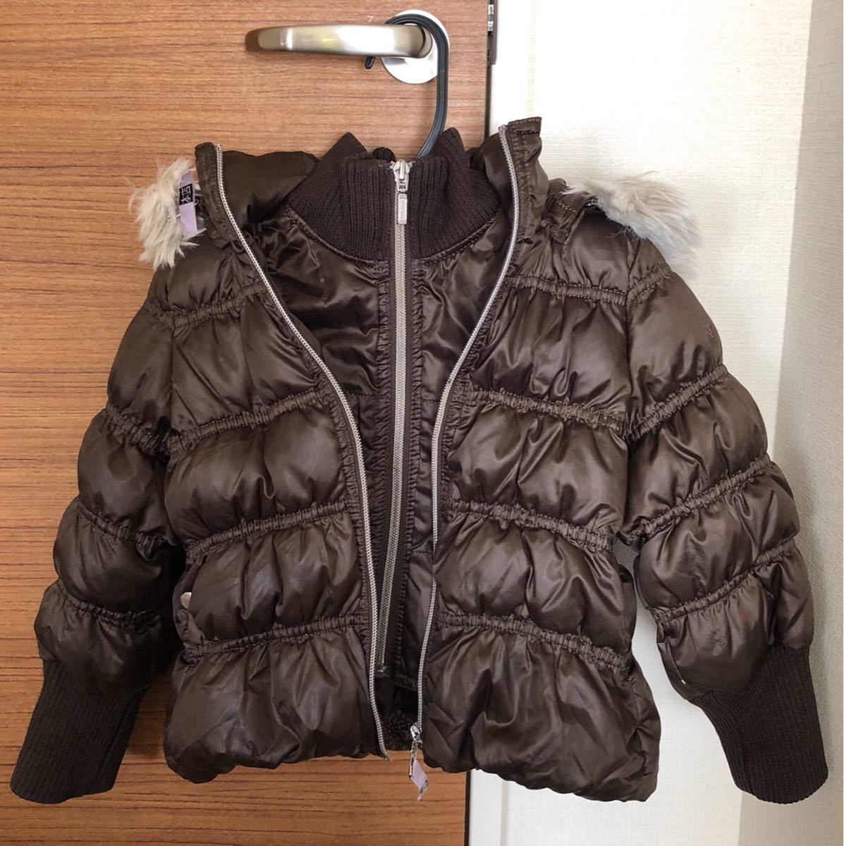 > BeBe 100サイズ ダブルジップの暖かダウン ダークブラウン お洒落なチョコレート色 ユニセックス 男児女児兼用OK! 美品