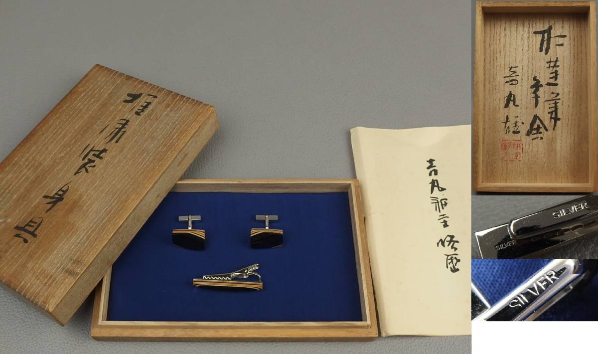 - 【骨董・茶道具】★人間国宝 音丸耕堂★★銀製堆漆装身具 カフス タイピン ar019sl.8 彫漆 漆芸