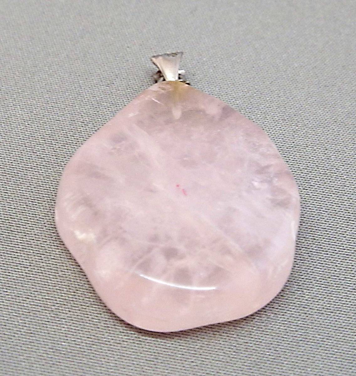 - EU-9972■天然ローズクォーツ ペンダントトップ 薄いピンク 中古
