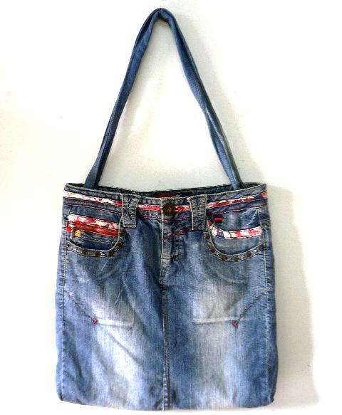 - ジーンズ リメイク デニム トートバッグ スタッズ 1点のみ/ハンドメイドバッグALL20%OFF