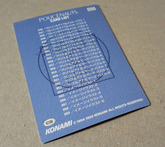 > 【希少初版トレカ】ポリスノーツ 006 トレーディングカード / 小島秀夫