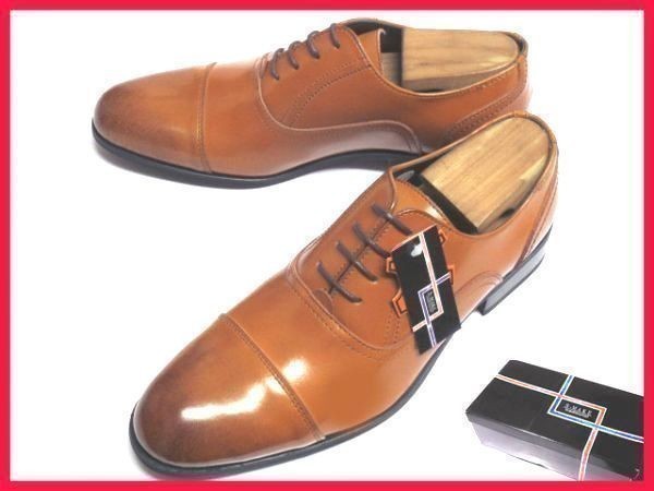 - 新品★日本製x本革/S-MAKE★ストレートチップ*名ブランド品質ビジネスシューズ/スーツに◆24.5茶/n7318br