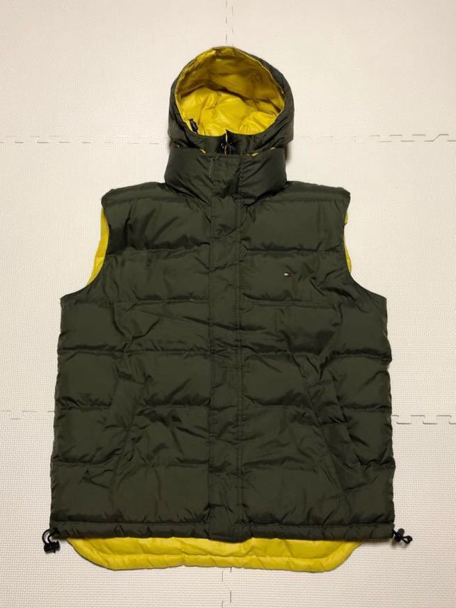 > TOMMY HILFIGER トミー フィルヒガー リバースブル ダウンジャケット L カーキ イエロー