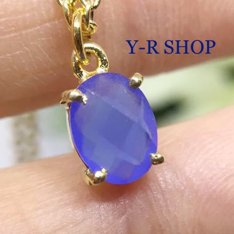 > オーバル型ブルーカルセドニーの小粒ゴールドペンダント★レディースネックレスカラーストーンエスニックアクセサリーcz新品宝石