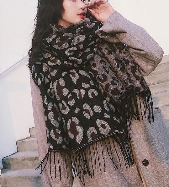 - ◇カシミア100%英国”20Leopard柄”ブラック新作ニット素材/大判ストール〇*:..azu00c