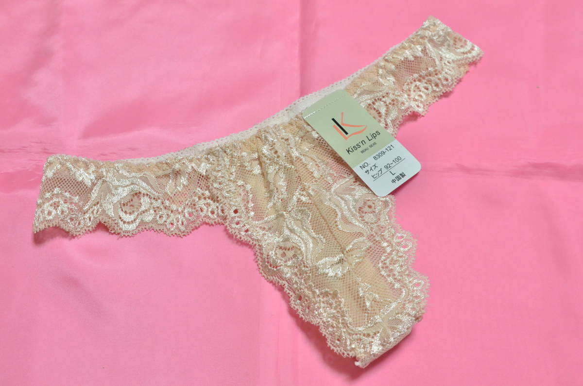 - 『送料無料』★高級ショーツ★Kiss'n Lips★Tバックショーツ★ベージュ★ L ★大きいサイズ★