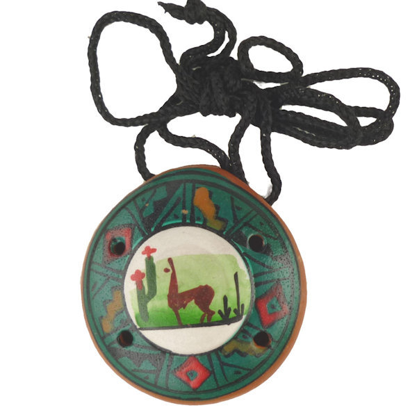 - オカリナ OC-014-4 オカリナネックレス ペルー クスコ アンデス アンデス風景 幾何学柄 アルパカ アルパカ柄 フォルクローレ楽器