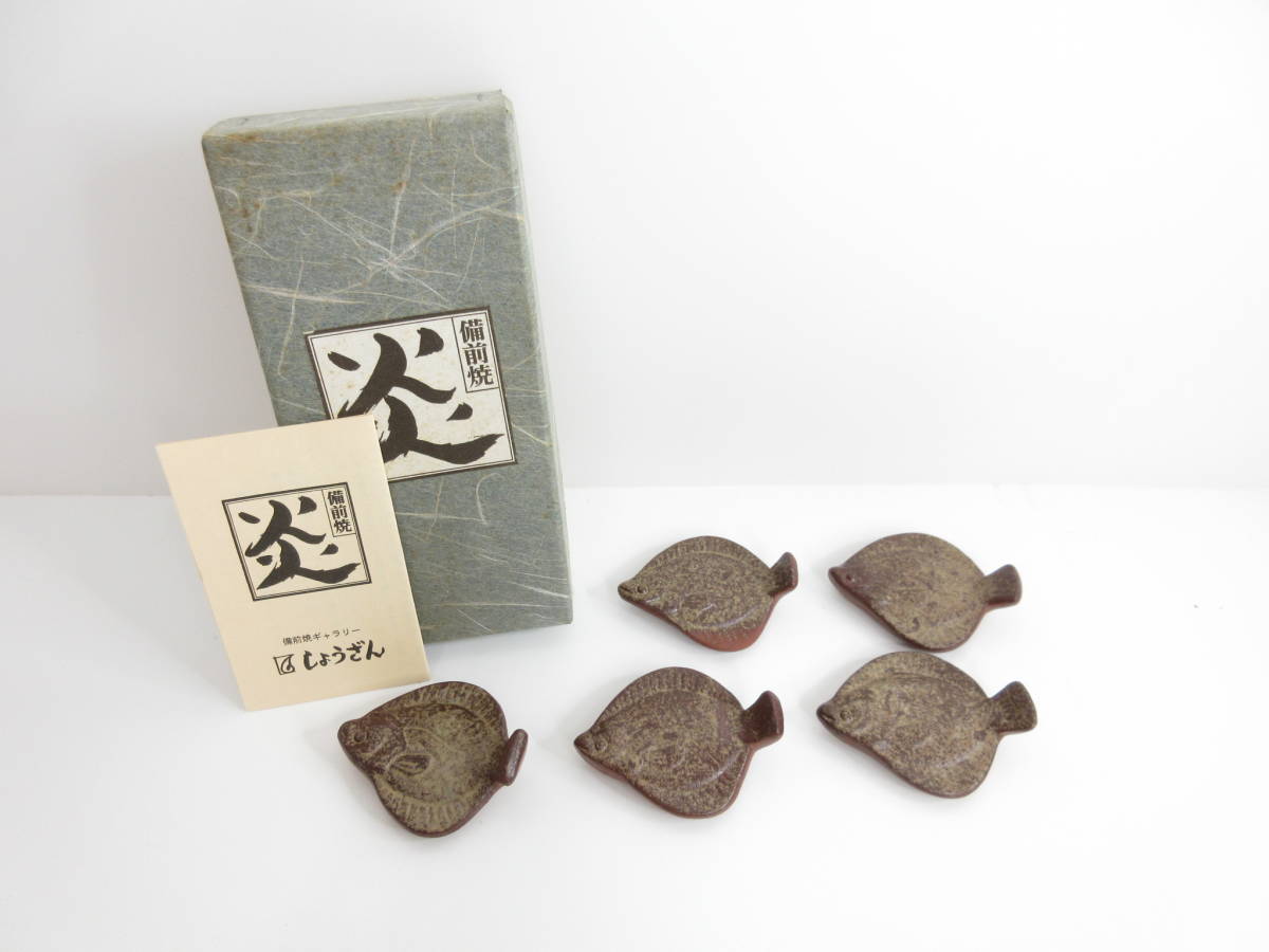 - 美品・激レア!!◆備前焼 炎 しょうざん 箸置き 魚 5客セット 備前焼ギャラリー 箱有 陶芸 伝統 工芸品 管理2003 R-1