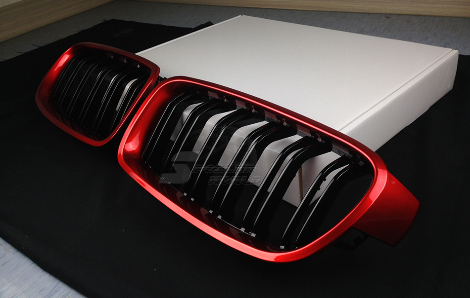 > 純正交換用 左右セット 取付簡単 在庫有 BMW F30 F31 M LOOK フロントグリル 金属風赤枠+光沢黒 2012-2017