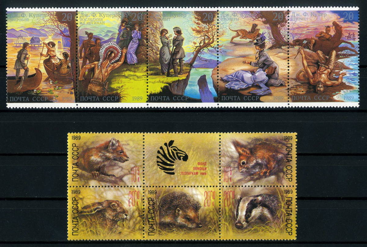 - ★1989年 ロシア ジェームズ・フェニモア・クーパーの小説 5種完 + 動物園の救済 5種完 未使用切手(MNH)★ZZ-305