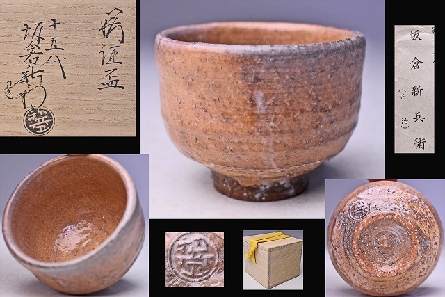 - 坂倉新兵衛 15代 ( 坂倉正治 )★ 萩ぐい呑 ★ 共箱栞 ★ 上作 ★ 景色発色良好 ★ 萩粉引タイプ ★ 高台脇雰囲気あり