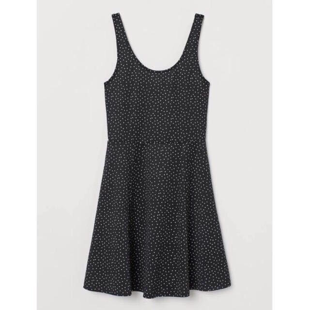 - 1回着新品同様☆H&Mジャージーノースリーブワンピース36XS黒白ドット