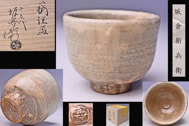 > 坂倉新兵衛 15代 (坂倉正治) ★ 萩ぐい呑 ★ 共箱栞 ★ 御本手発色 ★ 萩粉引タイプ ★ 酒器 盃