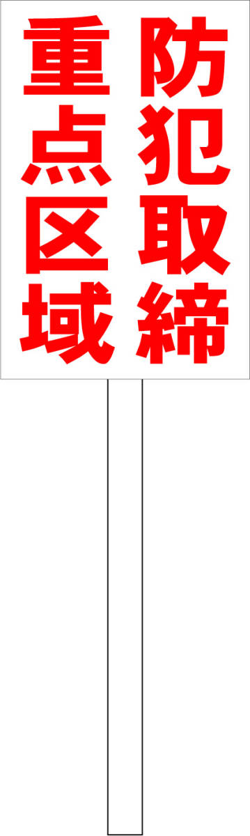 > シンプル立札看板 「防犯取締重点区域(赤)」その他 屋外可(面板 約H45.5cmxW30cm)全長1m